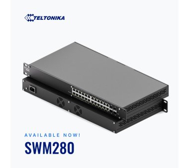 The SWM280 is a high-performance managed Ethernet switch from Teltonika, designed for enterprise, industrial, and mixed-use installations that demand both power and data over Ethernet, extensive management features, and reliable connectivity.
